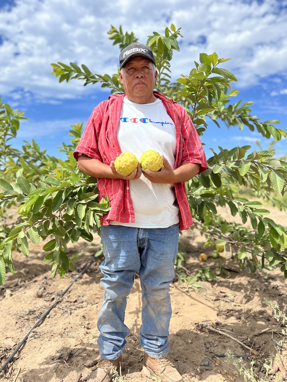 “Try one,” he urges as we sit at the foot of one of the guava-laden trees to talk about the mini oasis he’s shaping from the desert with his family in the appropriately named, Reforma Agraria (Agrarian reform), two hours from the capital of Baja California Sur, La Paz.